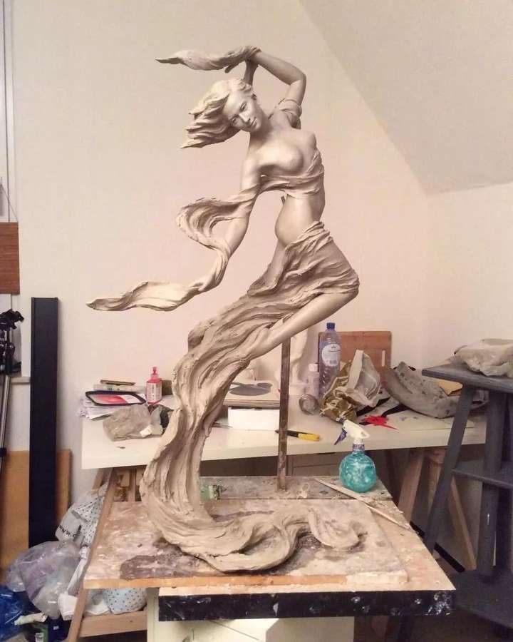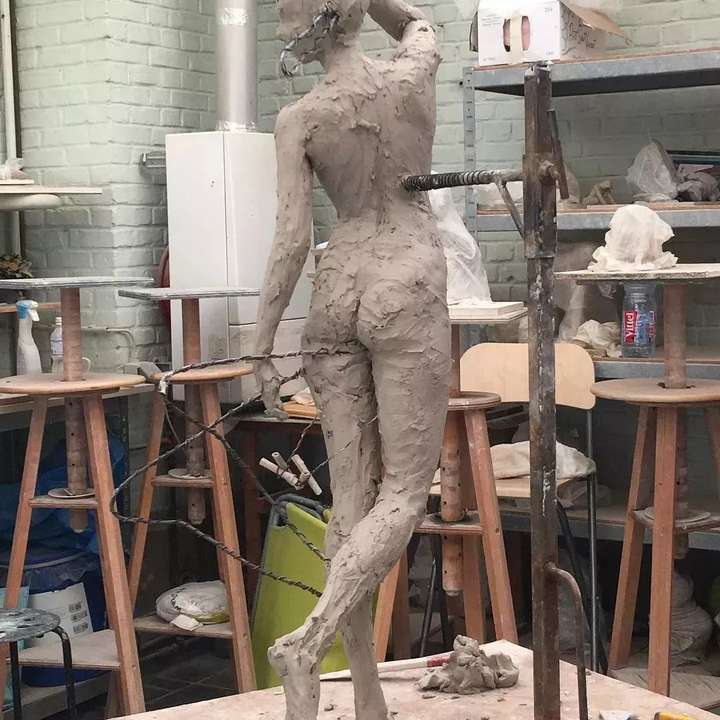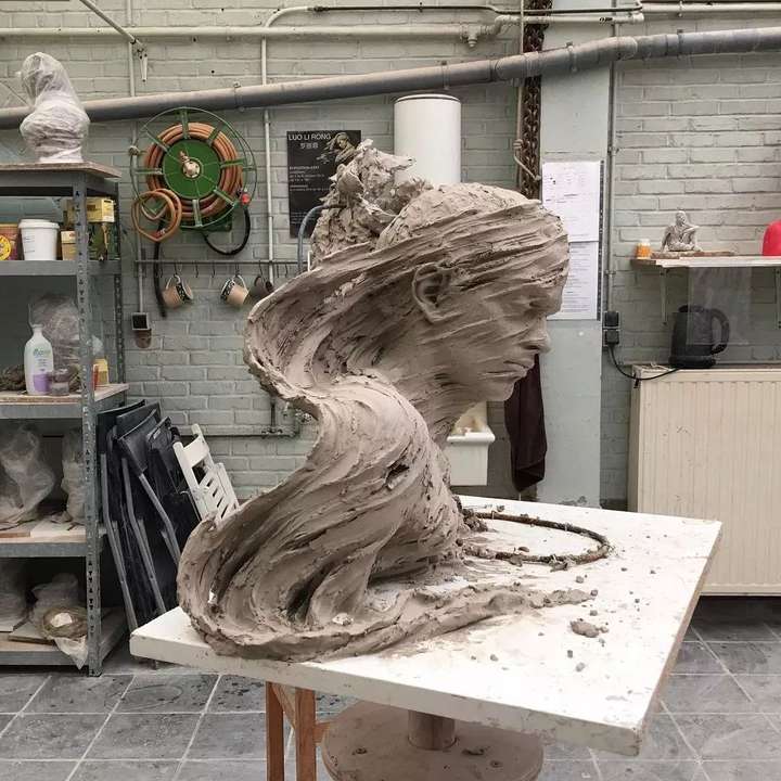 羅立榮的作品一開始都(dōu)是做成(chéng)泥塑