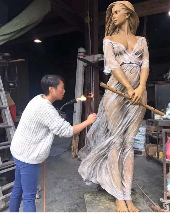 一尊尊青銅女雕塑,在一千多度高溫下鑄造