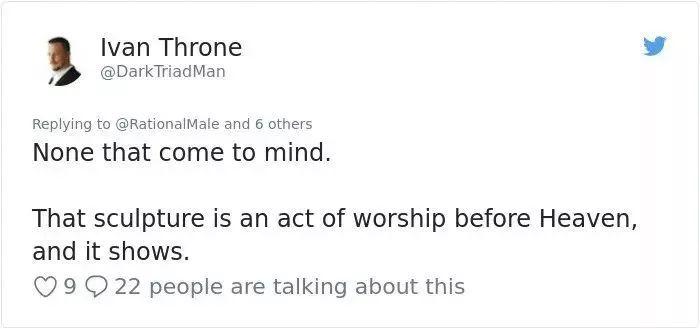 這件雕塑的美讓我們西方男人爲之奮鬥,犧牲甚至可以甘願死去